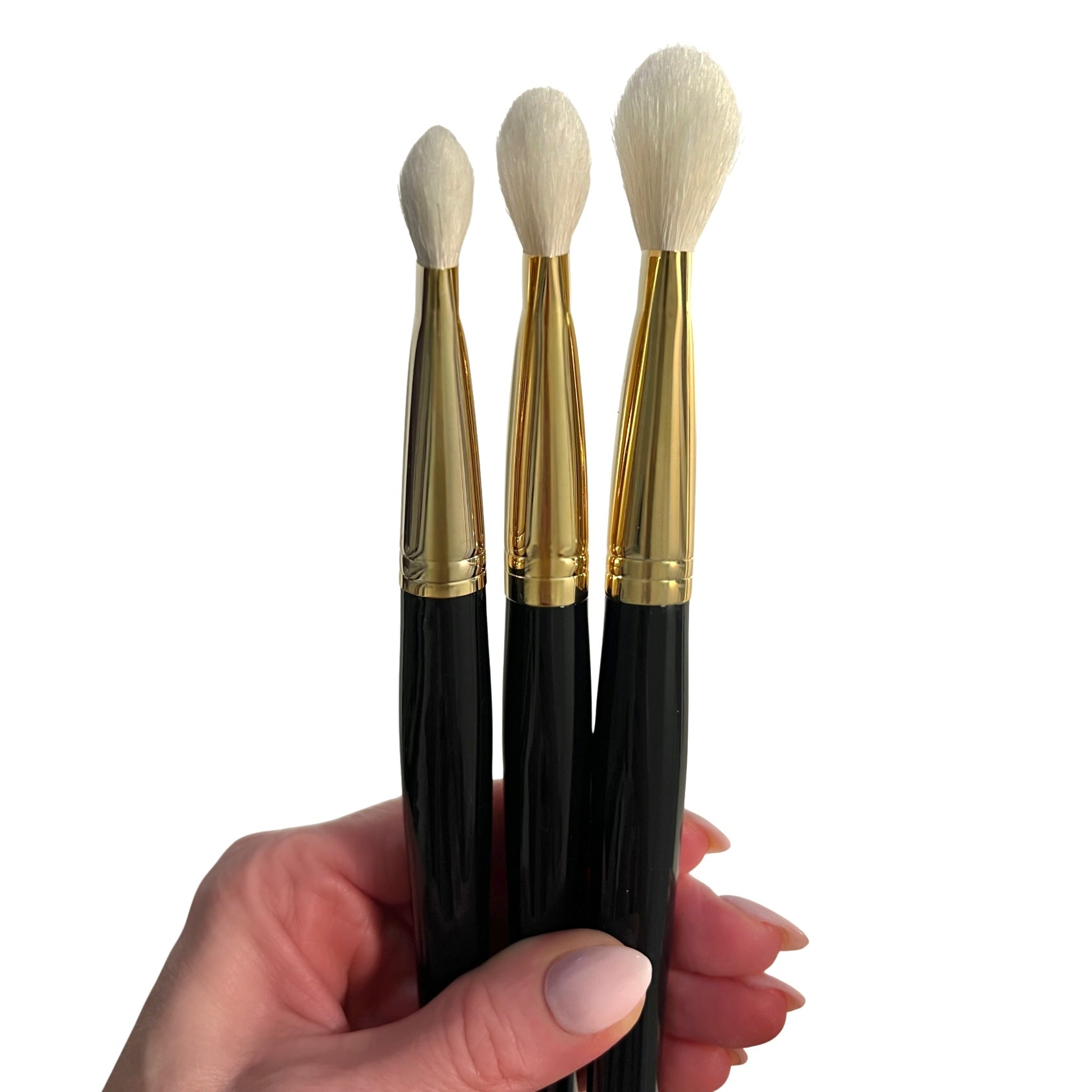 Zestaw trzech pędzli, które zaprojektowałam z myślą o konturowaniu twarzy, wygładzaniu skóry i precyzyjnym podkreślaniu rysów.